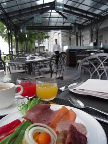 @和平飯店「ザ・キャセイ・ルーム」テラス 8月31日(金)、社内歓送迎会に合わせて、無料宿泊券を使ってフェアモント和平飯店に1泊することにした。 無料宿泊券を使ってフェアモント和平飯店に泊まる 無…
