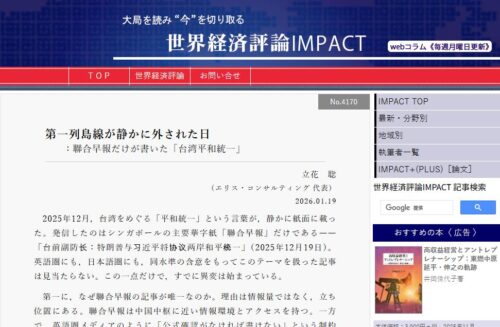 【世界経済評論IMPACT】聯合早報だけが書いた「台湾平和統一」、第一列島線が静かに外された日