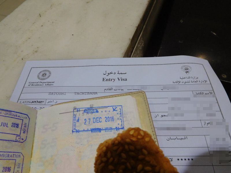 クウェート入国、ビザと入国スタンプとクッキーをセットでくれた