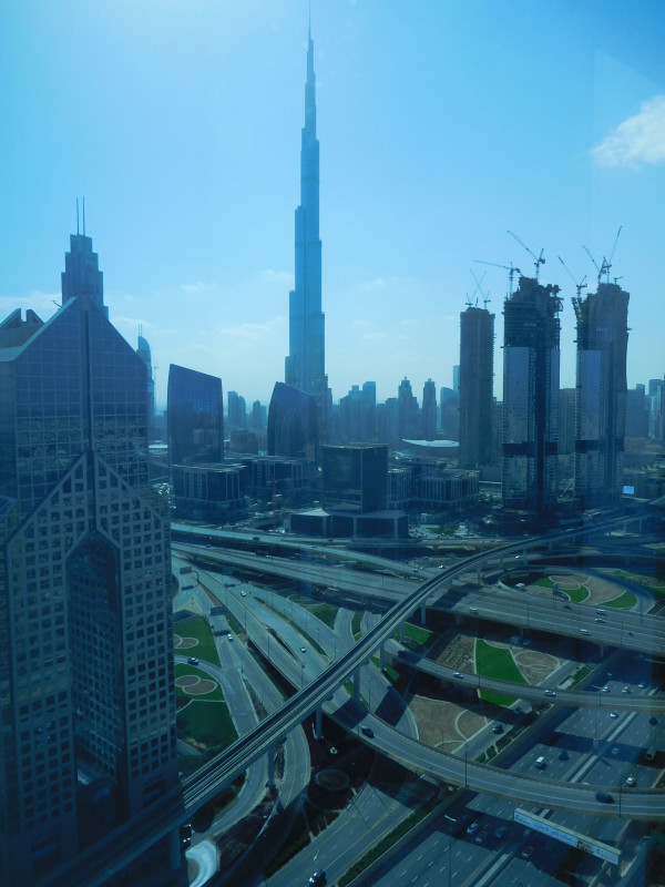 砂漠の中に聳え立つブルジュ・ハリファ(シャングリラ・ホテルの客室から撮影)