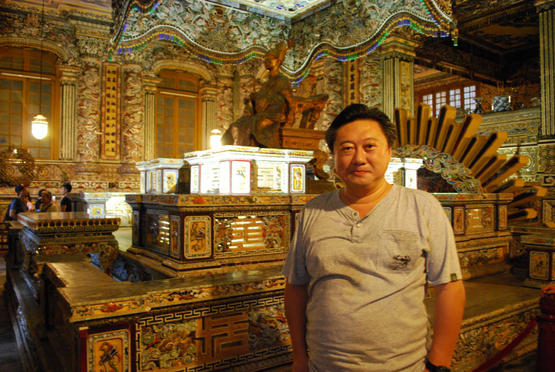 一息ついたところで早速、郊外にあるカイディン帝陵へ向かう。グエン朝12代皇帝カイディン帝(在位1916~25)が眠る陵である。1920年に着工、帝が1925年に崩じたあとも造営を続け1931年に完成、と11年掛けて建設された。