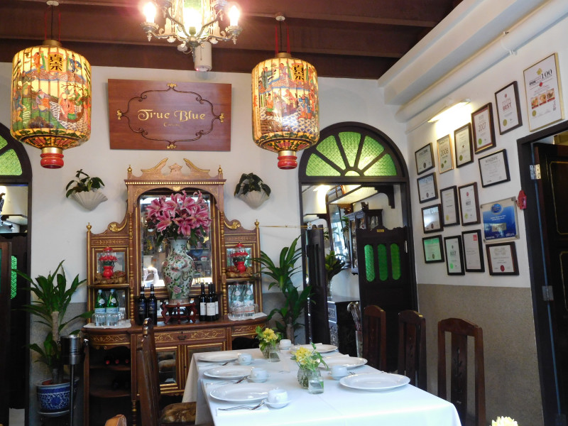 プラナカン博物館の見学を終えるところ、ちょうど正午。博物館から歩いて1分ほどのところに、小さなプラナカン料理店「True Blue」がある。そこで昼食を取ることにした。