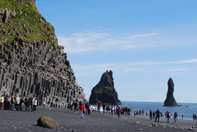午後はブラックサンド・ビーチとレイニスドランガル岩柱群を見学。奇岩、真っ黒な砂と石でできたビーチ、海面から突き出て並ぶ岩柱群・・・。素晴らしい景観だ。