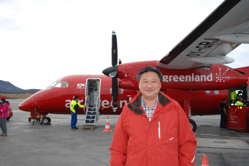 8時、定刻よりやや遅れて、機体がグリーンランドのイルリサット空港に着陸。