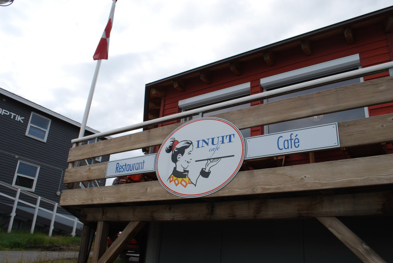 イルリサットの街で昼食を取ろうと入ったレストラン「イヌイット・カフェ(Inuit Cafe)」。笑顔で迎えてくれたのはなんと日本人だった。まったく予想もしなかった出来事、思わず記念写真の撮影を求めた。