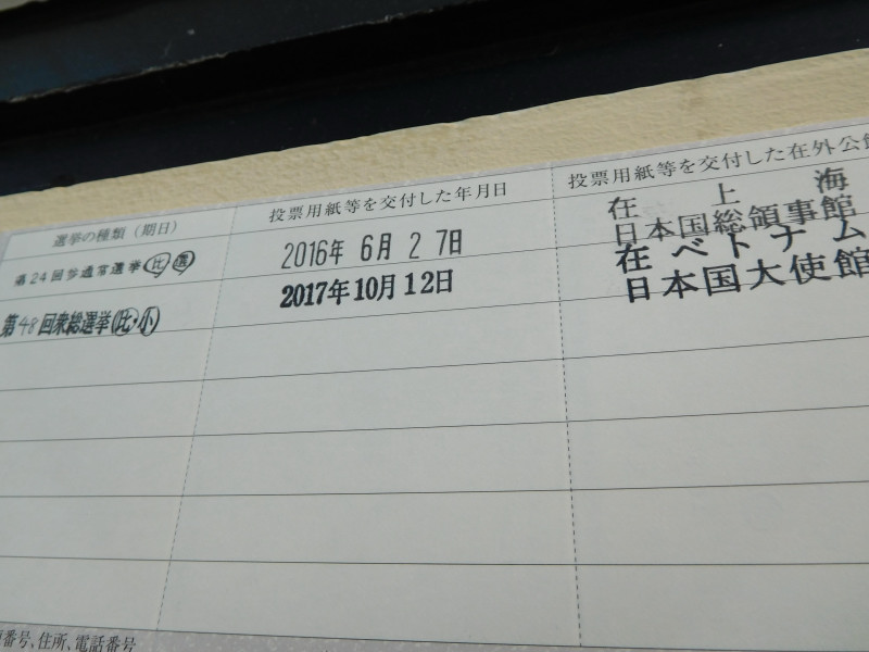 10月12日(木)夕方。ハノイ出張中の私は、在ベトナム日本大使館で衆院選の一票を投じた。