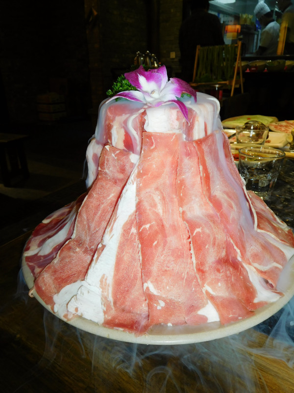 牛肉も結構だが、何よりも羊肉が大好き。ガチガチに凍った羊肉を鍋に突っ込むと、独特の香りが漂う。その湯気はまた素晴らしい。そろそろ佳境に入ると、変わりネタの登場。その1つは、豚の脳みそ。