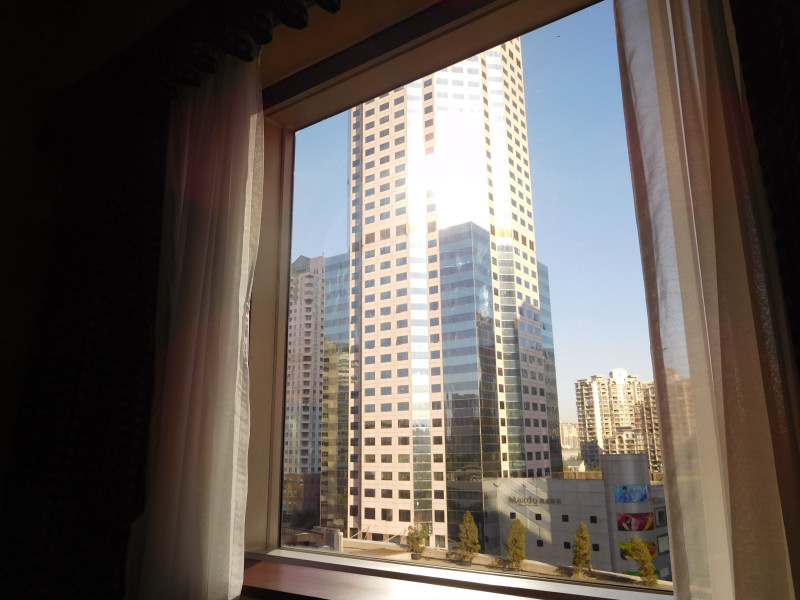 虹橋錦江ホテルの客室から望む事務所が入居する万都中心