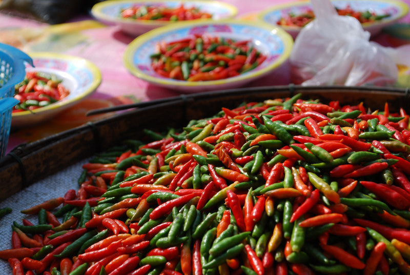 ワット・マイよりもその裏に立つ朝市に興味をもつ。庶民の生活を垣間見ることが旅の楽しみの1つである。観光地化されているとはいえ、生鮮の食料品が多く売られていることはやはり、現地住民の台所という証である。