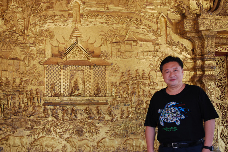 本堂の壁にある釈迦の説話や、ラーマヤーナが描かれた黄金のレリーフが素晴らしい。
