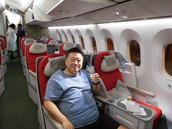 そのままラウンジで2時間弱の乗継待機。今度はエチオピア航空ET835便に乗り込み、さらに6時間のフライト。いよいよ機内食は食べられない状態だ。