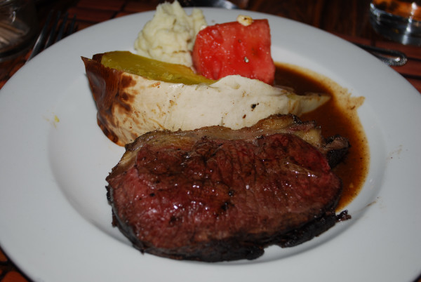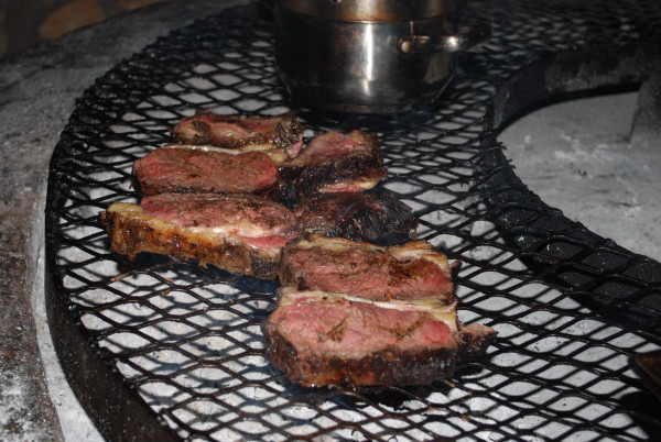 夕食。ナミビアの国民食といえば、第1に肉、第2に肉、第3にまた肉である。本日のメインも当然肉。シェフが自ら焼き台に立つ。