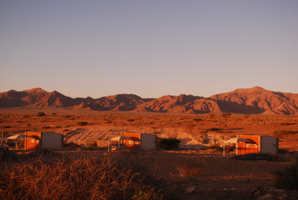 砂漠のロッジ「Agama Camp」。もちろん回りは何もない。ゆっくり流れる時間を楽しむには最高の場所だ。