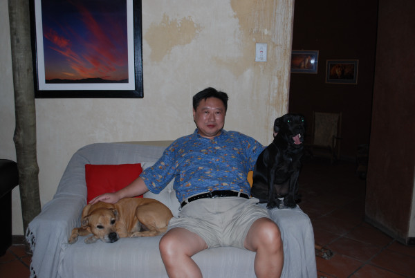 そして夕食前のひと時は、仲良くなった宿の犬たちと過ごす。荒野の宿には犬は欠かせない貴重な存在だ。このロッジも5~6匹飼っているようだ。