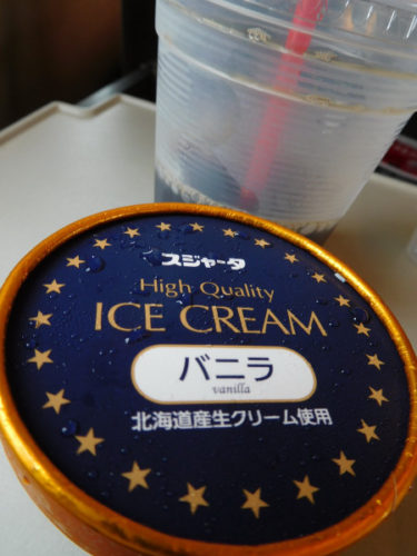 なぜ堅いかというと、濃厚な味わいと滑らかな舌触りを演出するため、アイスの空気含有量を低減し、アイスの密度を高めているからだそうだ。これも新幹線のためにプレミアム・アイスとして開発された特別な商品だとか。まあ、とにかく私はこのアイスが好きだ。