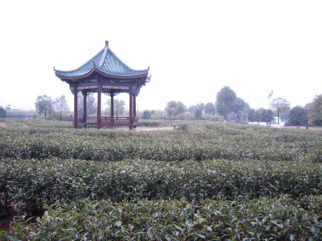 この土地には、径山茶(ケイザンチャ)という緑茶が産出されます。陸羽山荘リゾートの構内にも、茶畑が一面と広がっています。小川があったり、牛が散歩したりして、とても牧歌的なカントリー風景で、心が癒されます。