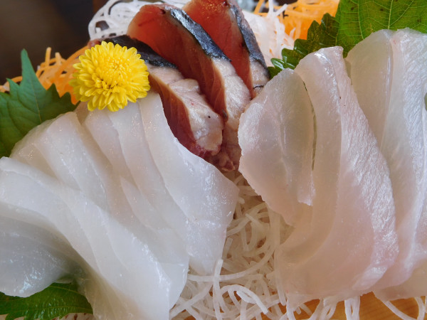 本日の3種刺身盛合わせは、マナガツオ、カツオと真鯛。もちろん申し分ない。いくら発達した現代的な物流業があるにしても、やはり水揚げされた魚を港で食べることには勝てない。