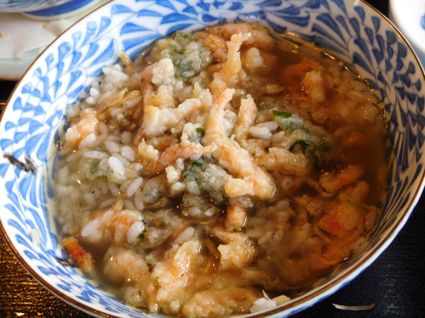 いよいよご飯もの。もう一度あの桜海老を食べたいので、かき揚げ丼を注文。これも異なる種の美味しさ。パリパリした食感とあまみが渾然一体となってご飯が進む。