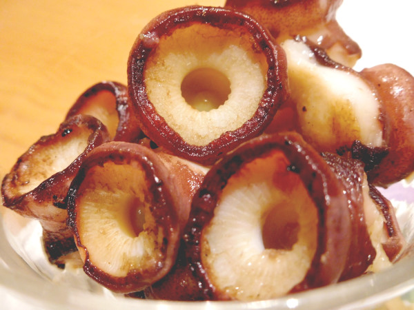 沼津の寿司店「山正」。吸盤系が面白そうでタコの吸盤塩焼きも注文してみると、これはこれは絶品。大きさからするとおそらくオスの吸盤だが、歯ごたえがあっても硬さを感じさせない。下処理はかなり丁寧にされている。