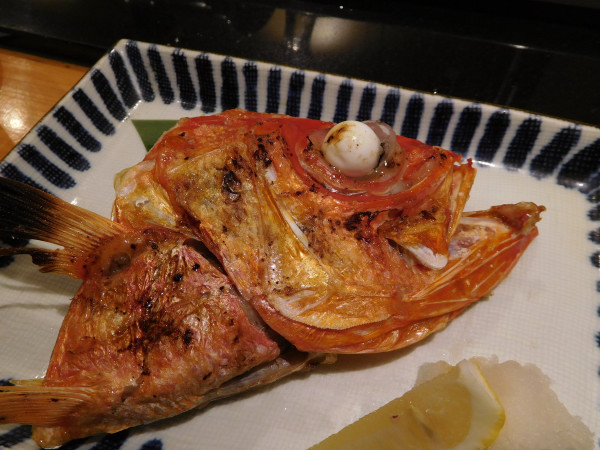金目鯛も刺身だけでは物足りないので、かぶと焼きを注文。海外の日本料理店では金目鯛は高級品中の高級品で、手が出ないほど高価だ。それに比べて日本国内は本当に安い。胃袋に納めておかないと悔いが残る。