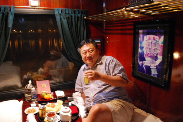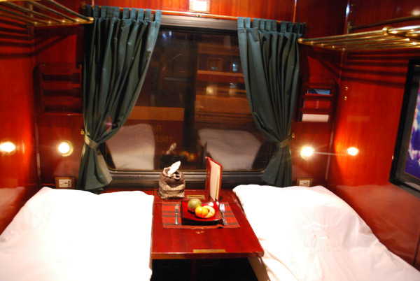 夜22時、夜行寝台ビクトリア・エクスプレスはアナウンスもなく滑り出す。定刻出発だ。運ばれてきたビールを飲み、軽食をつまみながら、車窓風景であるハノイの街の夜景を楽しむ。列車の旅、特に夜行寝台の旅はやはり旅情をそそるものだ。昨今飛行機の時代になったからこそ、列車は別格の存在感を確立したのだともいえよう。