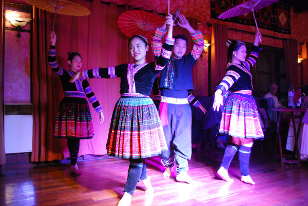 10月13日(土)。長い1日のツアーが終わり、17時過ぎにホテルへ帰着。酷い疲労感に襲われ、一気にベッドに倒れ込む。おでこに手を当てると、微熱だ。夜、ホテルのレストランに週1回の少数民族舞踊ショーがあって、すでに予約も入れてある。止めるわけにはいかない。