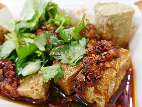 朝食を抜いた私はだいぶお腹が空いた。まず前触れの「前菜」には、恒例の臭豆腐。香ばしさと臭さのハーモニーはやはりたまらない。次に入る点心店では大量注文を開始する。