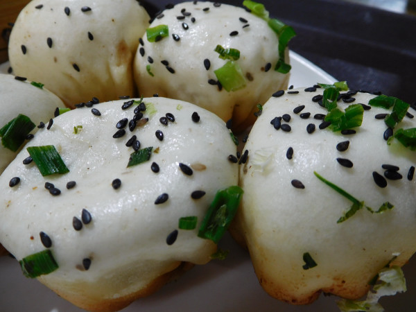 「生煎包」は、「生煎饅頭」(シェンジェンマントー)ともいう。挽き肉の具を小麦粉の皮で包んだ包子を、鉄板で蒸し焼きにした点心。小籠包より日本人の間での知名度がやや低いが、これはまた小籠包に負けないほどの美味である。