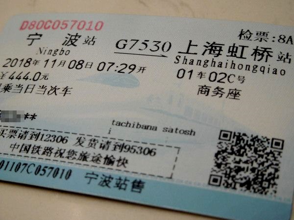 さらに寧波駅では、2回も保安検査をされた。上海行きの列車は、国際輸入博の関係で厳重保安対象になっていた。2時間ちょっとの走行で、午前9時半過ぎ、列車は上海虹橋駅に滑り込む。