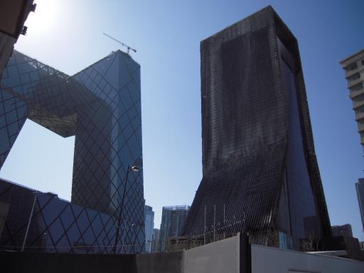 北京出張中、何回も車で、旧正月の花火で全焼した中央TV局の新ビル前を通りかかりました。