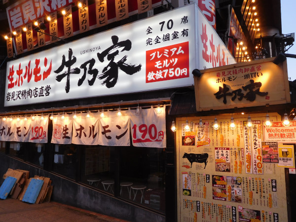 「牛乃家」。精肉店の直営店だけに、とにかくリーズナブルなお値段で旨い肉が食べられる。18時すぎると、もうほぼ満席状態。1人客のサラリーマンも多く、観光客だけでなく、地元客も入っているから、まず安心できる。