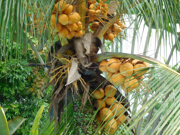 南国はいろんな花が勝手に咲いてくれるので、花を買う必要はない。花だけでなく、果実も勝手に実ってくれる。定期的に庭から椰子の実を収穫すれば、数十個の椰子の実は2週間も楽しめる。