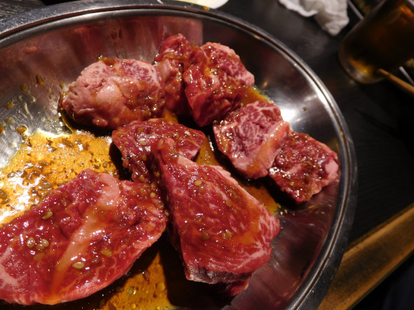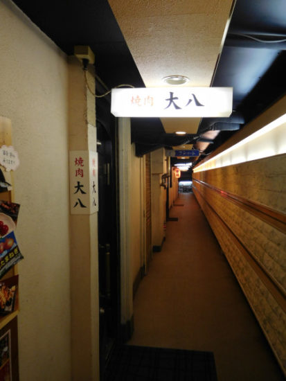 大阪出張中の夕食。美食家の友人に連れて行かれたのは、焼肉「大八」。東心斎橋にある、まさに知る人ぞ知る1店である。