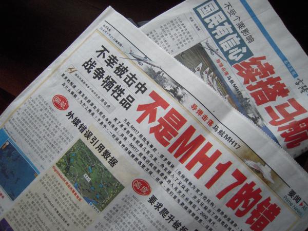 ※添付写真:2014年7月21日付、マレーシア主要紙「南洋商報」掲載、MH17便専門調査報告・検証記事、世界各専門機関の現段階の検証と航空専門家コメントを根拠に、MH17便の運行や操縦上の過失を否定する記事である(もちろん最終結論ではないが)。さらに、今回の事件を受けて、マレーシア航空が発表した航空券無条件払い戻しキャンペーンについて、多くのマレーシア国民は引続き同航空を利用する理性的な判断をしているとの報道も掲載された)