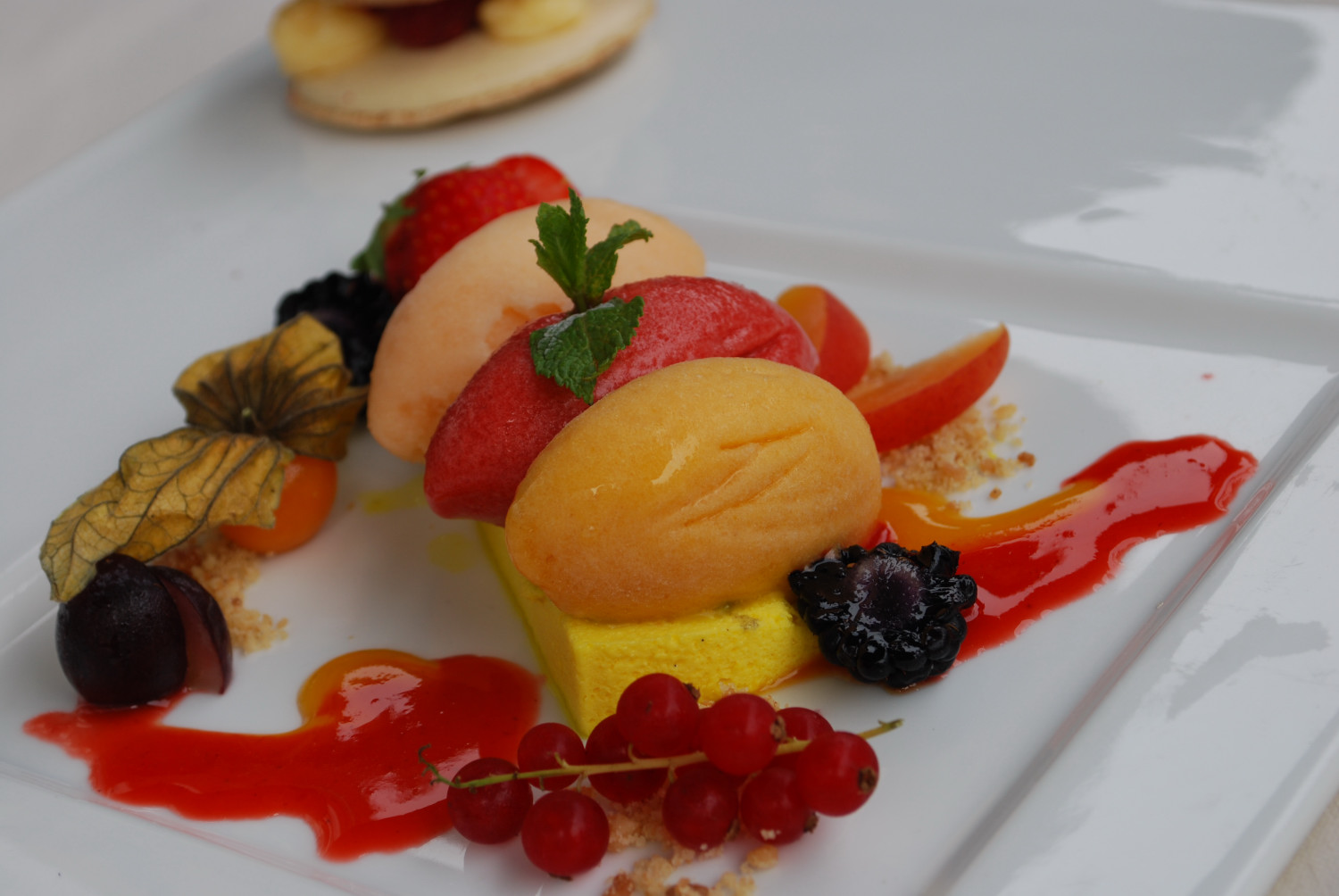 料理はすべてよし。デザートは地味なシャーベットを注文したつもりだが、出てきたのは芸術品。文句なし。