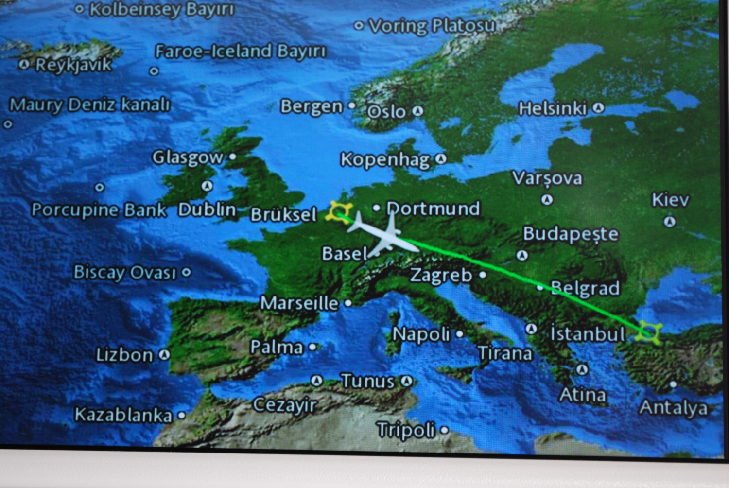 トルコ航空TK1944便機内にて、ブリュッセルからイスタンブールへ