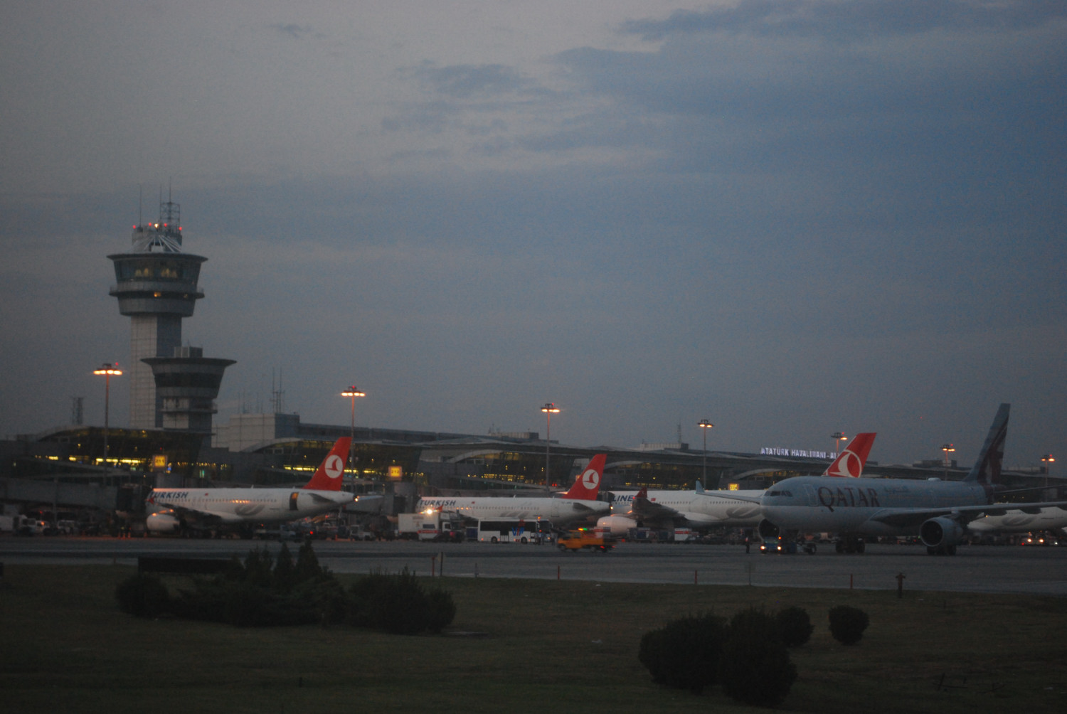 19時35分、定刻通りイスタンブールに到着。入国審査場では、パスポートの電子データの読み取りもなければ、写真ページさえ見ないのがびっくり。ポーンとスタンプを押すだけ、入国審査時間は5秒、いままで最速。日本よりも早い。やはり親日国家トルコのお蔭だろうか。