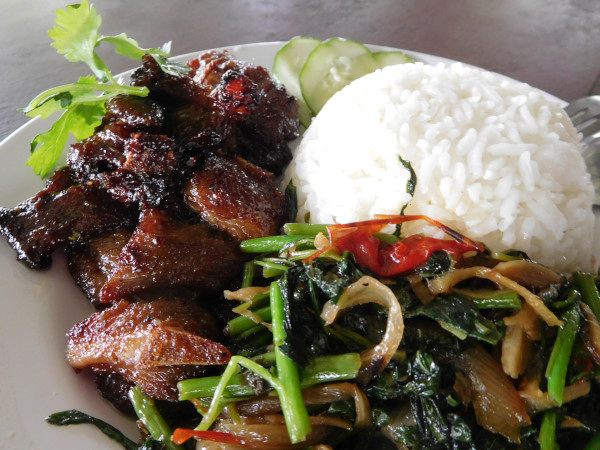 荷物を降ろしたら、食堂棟へ車で移動して昼食。ローカル料理のラム肉煮込みと野菜、ご飯。決して贅沢ではないが、味はなかなか良い。
