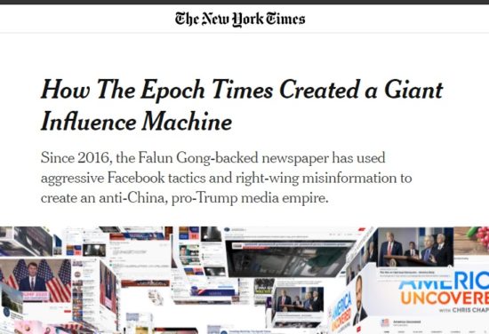 世界「トップクラス」の大メディアに取り上げられ、しかも大々的に取り上げられたことは正直、「大紀元」にとって数億円相当の無料広告に等しい。ニューヨーク・タイムズが「大紀元」のような零細メディアを競合社と見なしたことは、「大紀元」の価値を認めたことになる。
