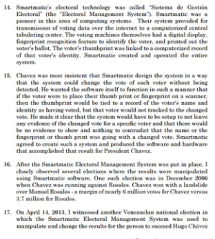 証人であるチャベス前ベネズエラ大統領の国家安全警備官によれば、2013年4月14日のベネズエラ大統領選では、同じドミニオン・システムによって、不正操作が行われたという――。
