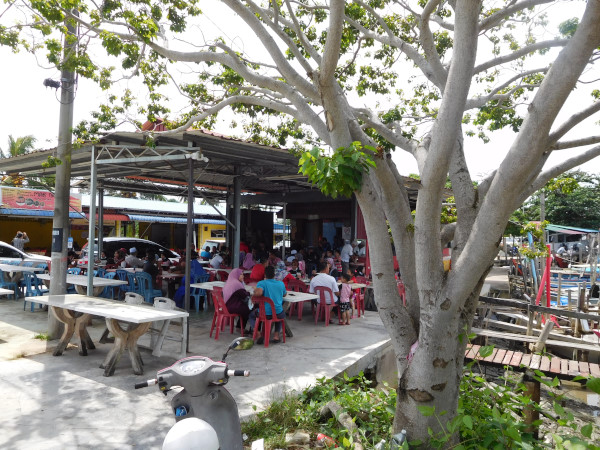 場所はパリジャワ(Parit Jawa)という漁村。ムアールの街を出て、南下して12~13kmのところ、マラッカ海峡沿いに位置している。寂れた村には何軒かのローカル食堂が軒を連ねているが、外国人客はまったく見ない。ローカル色満点。素晴らしい。