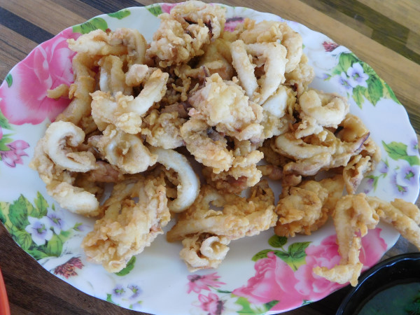 同じソースで、エイの切り身も調理されている。なかなか珍しい食材と思ったら、現地ではかなりポピュラーで、大学の学食では日常的メニューとして供されているという。