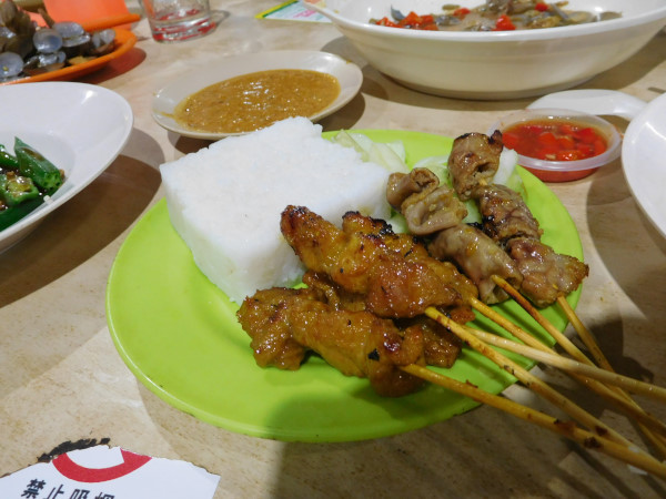 サテへいこう。ここのサテは肉のほかにモツも入っている。しかも、ありがちな甘いタレではない。日本の焼鳥屋を思い出す。日本酒がほしい。