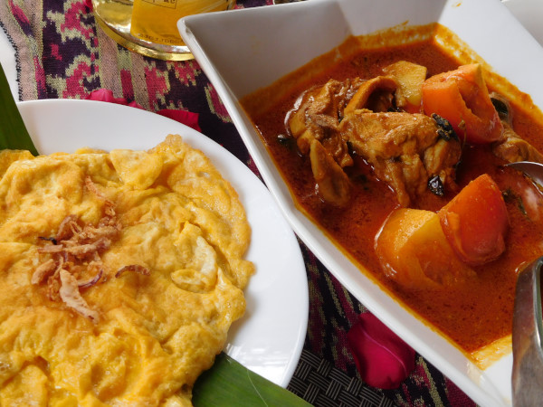 嬉しいことに、酒類の持ち込みは自由、しかも持ち込み料無料。料理の選択肢は限られているが、3泊なら、アジアン料理、バーベキュー、西洋料理と日替わりになっており、飽きることはない。初日はアジアン料理で、チキンカレー、卵炒め、野菜、スープといったメニューで、悪くない味だった。お酒は持ち込みの焼酎。