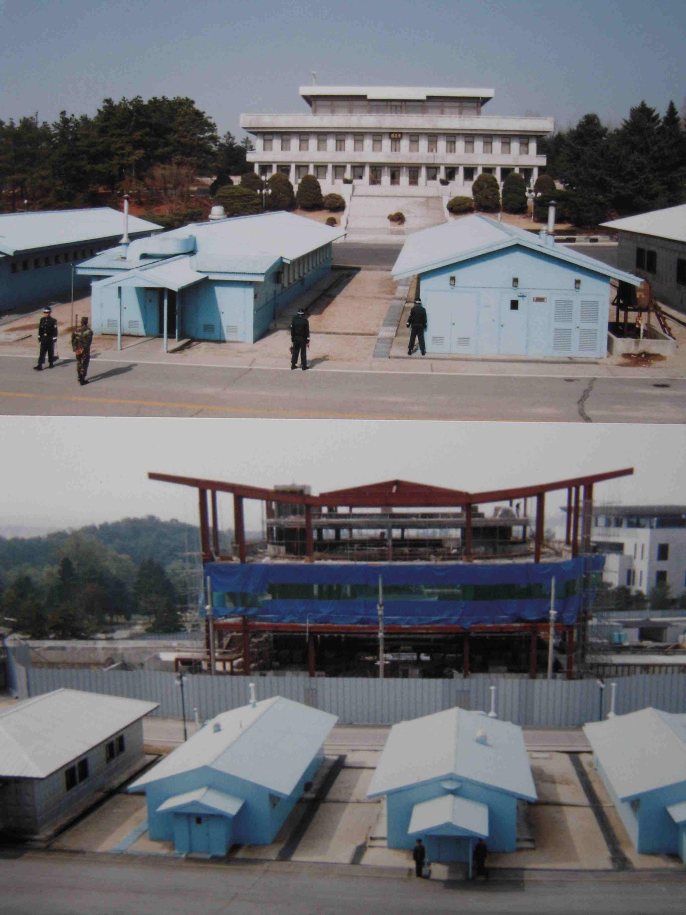 板門店国境 【上】:韓国側から北朝鮮側を見る(95年)【下】:北朝鮮側から韓国側を見る(97年) 共に筆者撮影