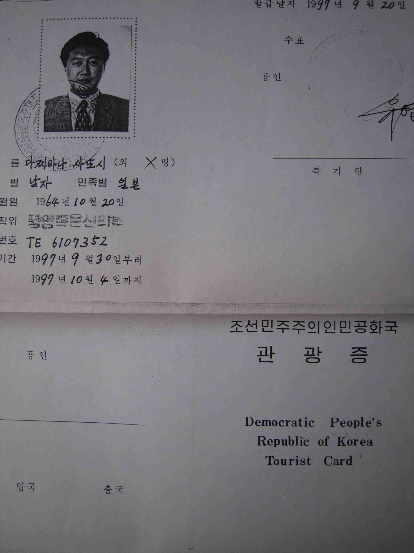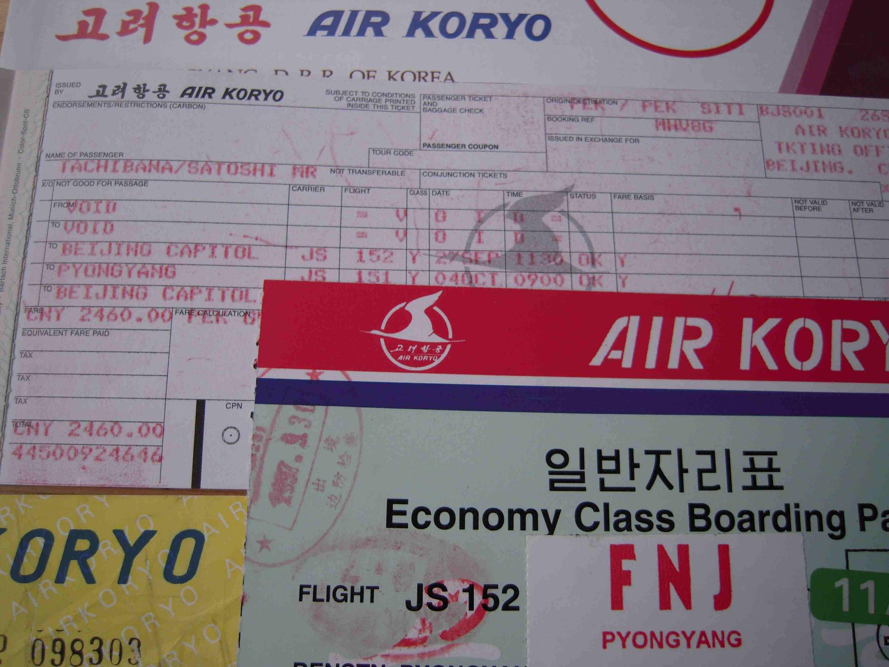 北京首都空港の一角に目立たない高麗航空のカウンターがある。そこで日本国旅券と旅行許可証を差し出す。日朝間に国交がないため、日本国旅券にビザも出入国スタンプも押されない。われわれが入手したのは、「朝鮮民主主義人民共和国入国許可証」という小冊子だった。