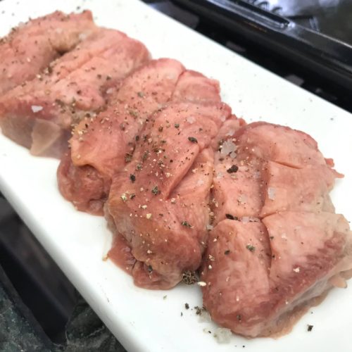 生肉の調達先は、クアラルンプール市内の焼肉店と市場。牛タンは、立花仕様の特別超厚切りにしたくて、先日ベロ1本丸きり、しかも頭部組織がつながったまま市場から買ってきた。
