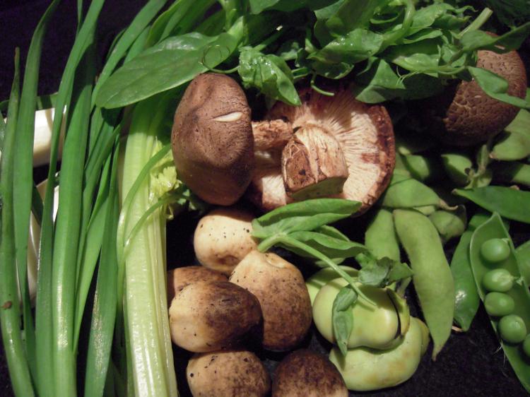 韮、茭白(マコモタケ)、フクロタケ、シイタケ、芹菜(キンサイ)、蚕豆、枝豆、グリーンピース、豆苗、その他野菜・・・