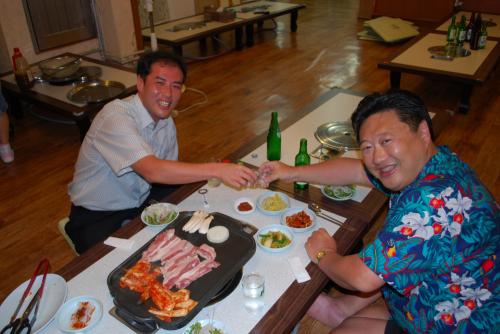 「牛肉は高価で、韓国人には非日常食ですよ。よほど接待のときでもないと、食べません。身体にも良くないし。韓国人は日常的に豚肉を食べるのです」といって、ソウルの下町にあるサムギョプサル(삼겹살)の専門店に私を連れて行った。「サム」は数字の3、「ギョプ」は層、「サル」は肉を表し、日本でいう三枚肉、すなわちばら肉の意味だが、日常「サムギョプサル」と言えばこの豚の三枚肉の焼肉料理のことをさす。