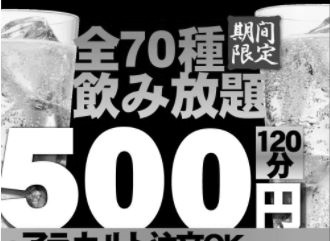 飲み放題500円。はっきり言って、この予算でしか飲めない人は、酒を飲む身分ではない。断酒したほうがいい。